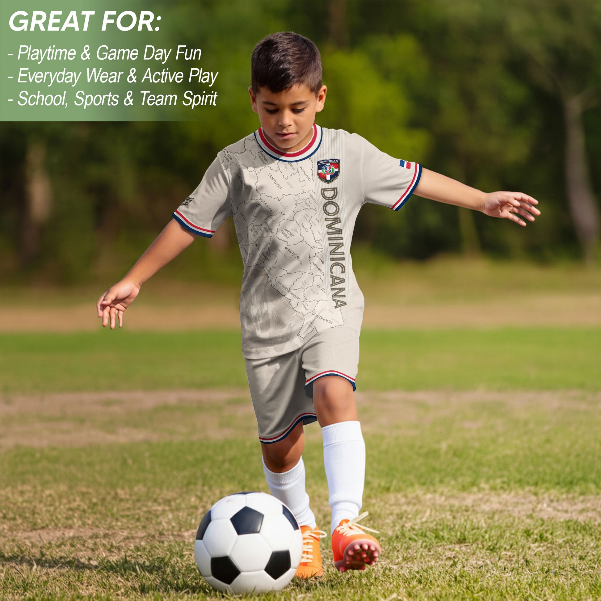 Dominican Republic Kids Youth Heritage Beige Map National Pride Athletic Soccer Jersey